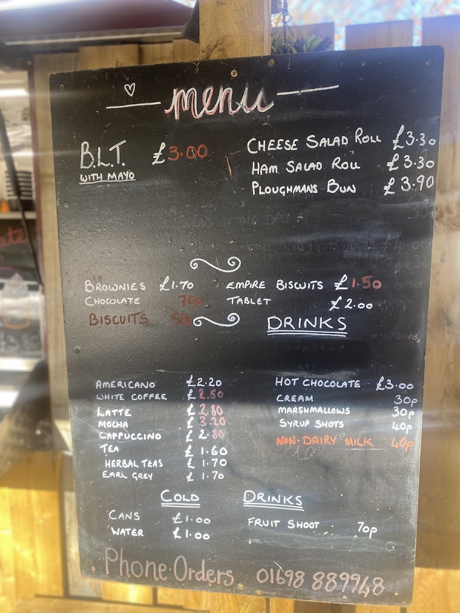 Other Food Items cover a range of light bites and snacks such as cheese salad rolls, ploughman’s buns, and notable dishes like lasagne and chicken sandwiches. Additionally, there are sweet treats including brownies and empire biscuits.
